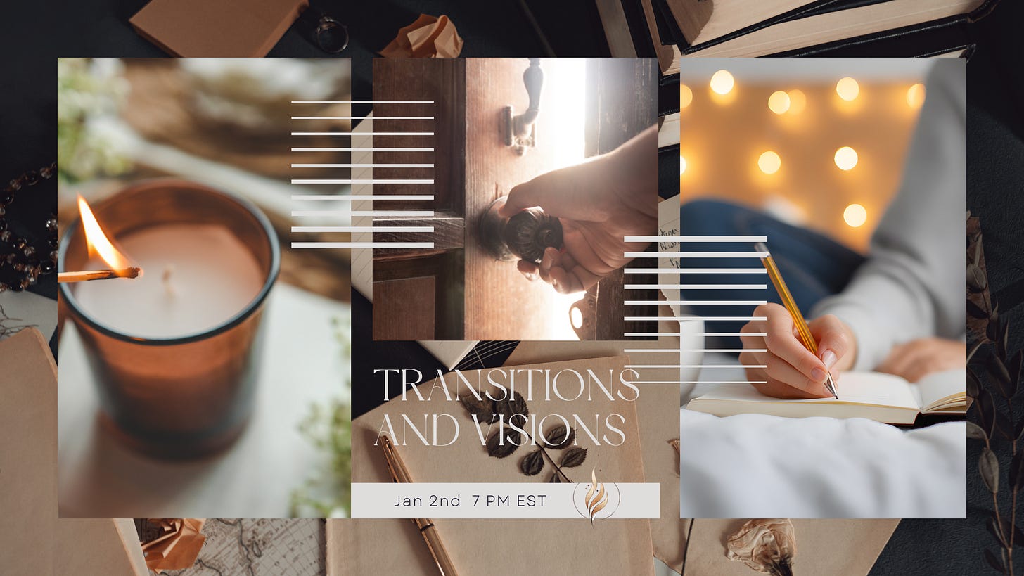 On Friday, January 2nd at 7:00 pm EST, I’m hosting a live online gathering called Transitions & Visions.